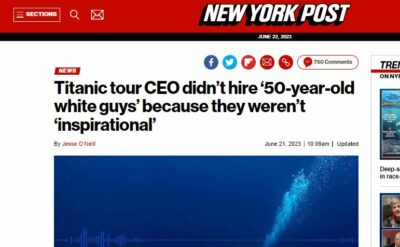 Enfin, vous pourrez lire cet article du New York Post concernant les propos hallucinants de wokisme tenus par le PDG d’OceanGate l’entreprise qui a mis au point ce sous-marin !