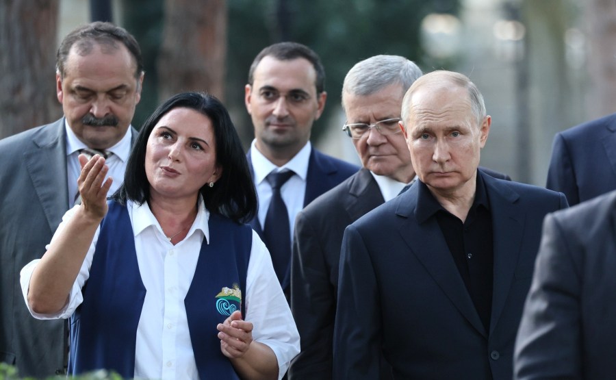 En bref, nous sommes dans un endroit formidable aujourd’hui. Il est idéal pour les loisirs et le travail. Notre ordre du jour comprend des questions sur le développement de l’industrie touristique du pays, principalement dans notre Caucase du Nord. Nous examinerons les objectifs dans ce domaine ainsi que les projets spécifiques. L’architecte en chef de la ville nous en a parlé aujourd’hui – ils ont une bonne équipe jeune; leurs yeux brillent et ces projets sont déjà en cours. Certes, pour autant que je sache, il est nécessaire de penser aux sources de financement à ce stade pour s’assurer que ces plans ambitieux – et ils sont vraiment ambitieux – se traduisent dans la réalité.