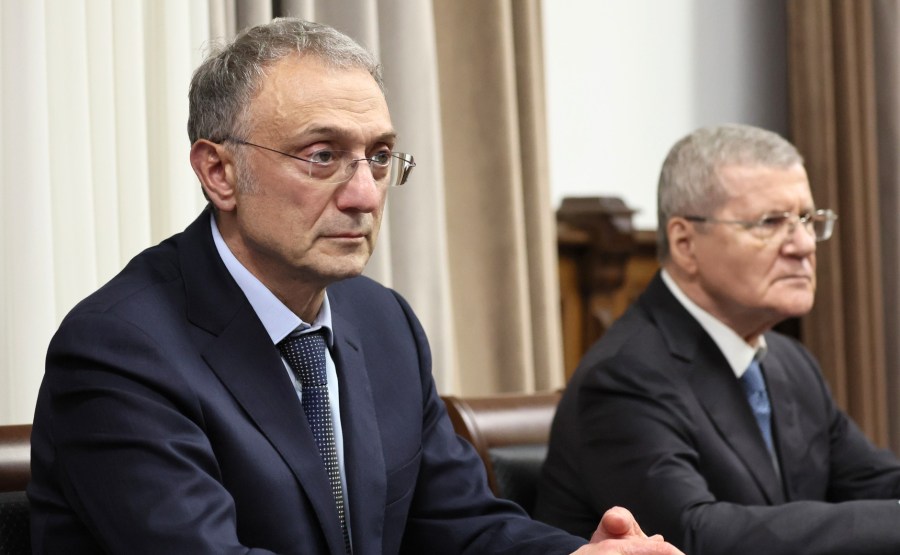 Le sénateur de la Fédération de Russie Suleiman Kerimov (à gauche) et l’envoyé plénipotentiaire présidentiel dans le district fédéral du Caucase du Nord Yury Chaika lors d’une réunion sur le développement du tourisme. Photo : Sergueï Savostyanov, TASS