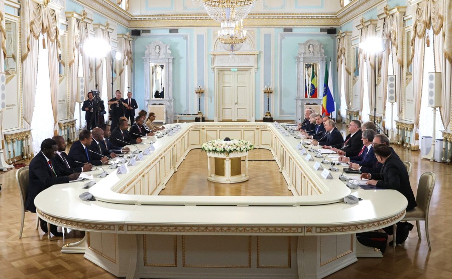 Président de la Russie Vladimir Poutine : Monsieur le Président, je suis ravi de vous accueillir en Russie et à Saint-Pétersbourg. Merci d’avoir accepté notre invitation à venir en Russie pour le deuxième Sommet Russie-Afrique.