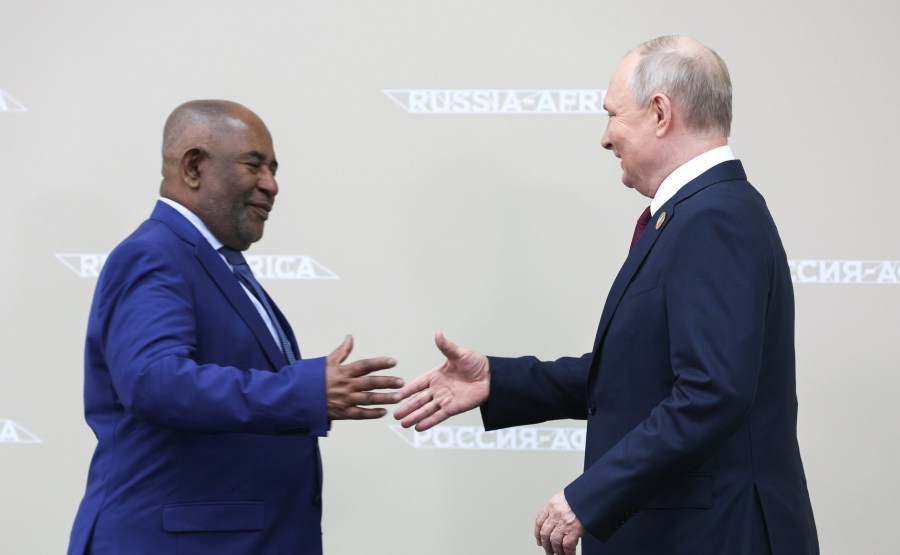 Président de l’Union Africaine, Président de l’Union des Comores Azali Assoumani (retraduit) : Votre Excellence, Président de la Fédération de Russie, Monsieur Poutine.