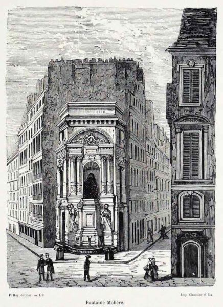 Photo : Fontaine Molière au XIXe siècle, janvier 1890, F. Roy éditeur, Charaire et Fils imprimeur, @WikiMediaCommons.