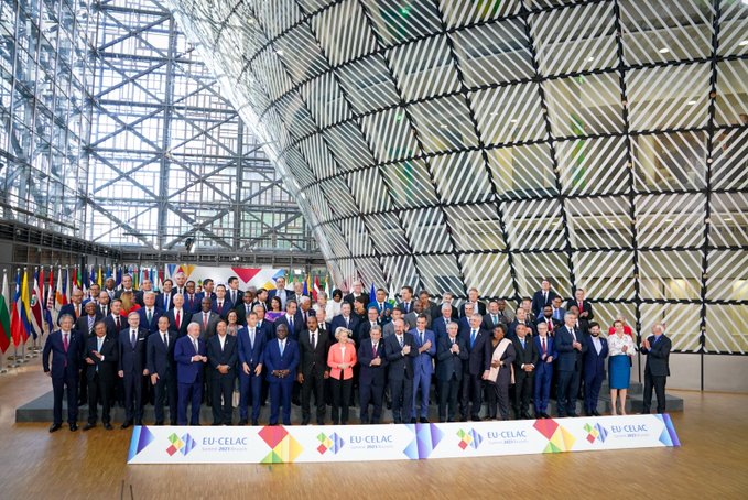 Le sommet de la CELAC (Communauté des Etats d’Amérique latine et des Caraïbes) et de l’UE à Bruxelles, les 18 et 19juillet 2023, a réuni la plupart des chefs d’Etat des pays d’Amérique latine dont également le Président cubain – Miguel Díaz-Canel et la vice-présidente vénézuélienne – Delcy Rodríguez, sanctionnée par l’UE. La CELAC est une libre association de l’ensemble des 33 Etats des deux Amériques, exception faite des Etats-Unis et du Canada. Le fait que les médias standards germanophones aient pratiqué le mutisme à l’égard de cet événement important se comprend aisément si l’on considère le déroulement et les résultats du sommet qui se sont éloignés de l’esprit régnant aux niveaux supérieurs de l’UE. |