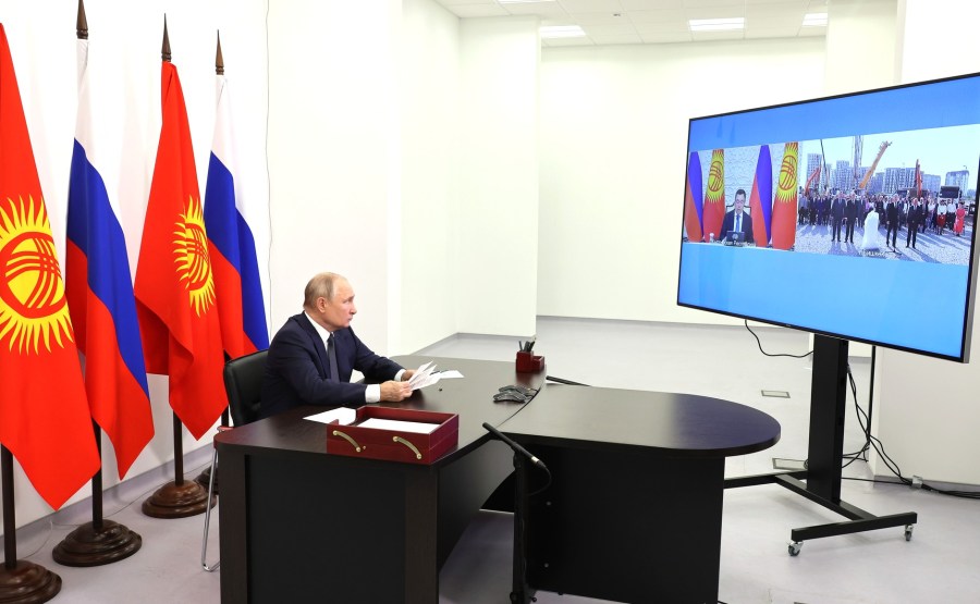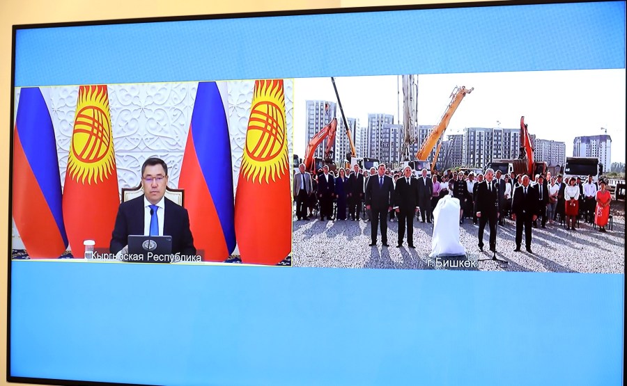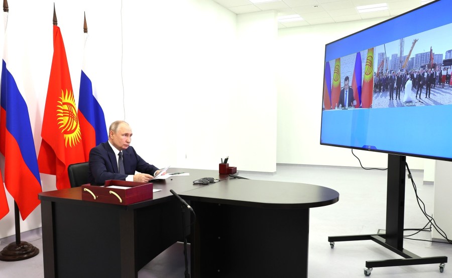 Vladimir Poutine et le président du Kirghizistan Sadyr Japarov ont participé par vidéoconférence à la cérémonie de lancement de la construction de trois écoles de langue russe à Bichkek, Batken et Karakol. L’enseignement dans les écoles se fera en russe. Le projet est financé par la Fédération de Russie.