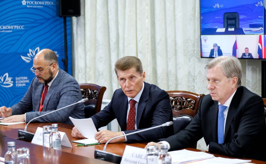 4 sur 8 Le Vice-Premier ministre – Envoyé plénipotentiaire du Président dans le District fédéral d’Extrême-Orient, Iouri Trutnev, lors d’une réunion avec les modérateurs du Forum économique oriental (par vidéoconférence).