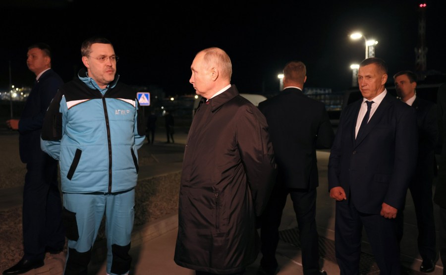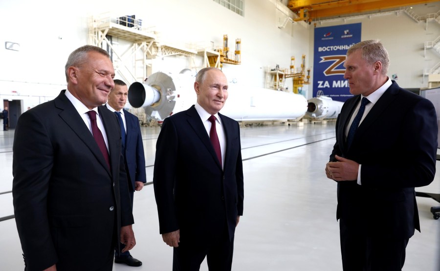 Les dirigeants ont inspecté les installations du nouveau cosmodrome, notamment une salle d’assemblage des propulseurs pour les lanceurs Angara, le site de lancement du lanceur spatial Soyouz-2, un site de lancement Angara en construction et le centre de contrôle de lancement.