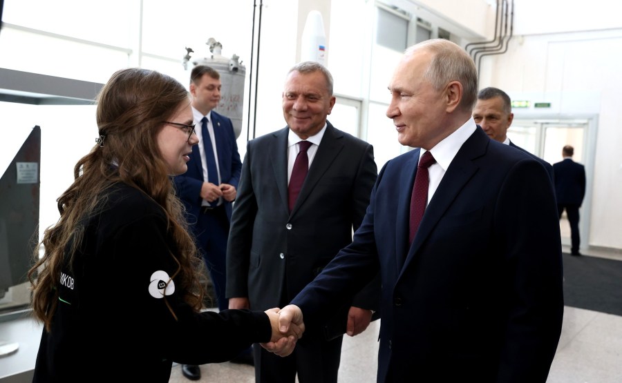 Avant d’inspecter le cosmodrome, Vladimir Poutine a eu une conversation avec Mariya Andreïeva, une élève de neuvième année du lycée classique n°1 de Rostov-sur-le-Don. Le 1er septembre, elle a participé à la leçon ouverte Parler de ce qui compte, dirigée par le Président. Elle lui a dit qu’elle était fascinée par la conception de satellites spatiaux et a suggéré d’élaborer des programmes éducatifs pour les étudiants des entreprises de Roscosmos.