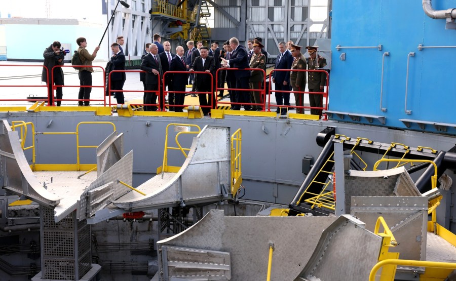 10 sur19 Kim Jong-un, président des Affaires d’État de la République populaire démocratique de Corée, inspecte le cosmodrome de Vostochny. Photo : Artem Geodakyan, TASS