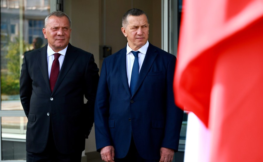 6 sur 19 Le vice-Premier ministre – Envoyé plénipotentiaire du Président dans le District fédéral d’Extrême-Orient Iouri Trutnev (à droite) et le directeur général de Roscosmos Iouri Borissov avant une visite conjointe au cosmodrome de Vostochny avec le président des Affaires d’État de la République populaire démocratique de Corée, Kim Jong-un. Photo : Vladimir Smirnov, TASS
