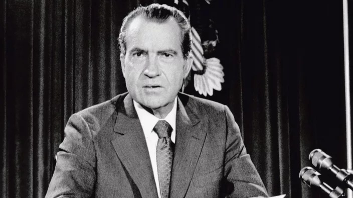Le 15 août 1971, le président américain Richard Nixon annonçait en direct aux téléspectateurs, la suspension «temporaire» de la convertibilité du dollar en or. CSU Archives/ŠEverett / Bridgeman images