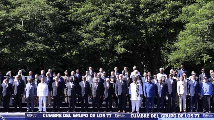 Lors du sommet du G77, groupe des pays émergents ou en développement, Cuba, qui à la fois hébergeait et présidait la réunion, s’est prononcé en faveur d’un impact nettement accentué du Sud global sur les relations internationales. Miguel Díaz-Canel, Président et chef d’état cubain, a affirmé qu’il revenait au Sud de «changer les règles du jeu» de l’ordre international, afin de prendre la succession des prospères nations occidentales dont les intérêts avaient été prépondérants pendant des siècles. Le président cubain a déclaré que les pays en développement étaient les principaux victimes de la «crise multidimensionnelle» régnant dans le monde actuel, allant du «commerce inégal et abusif» aux «changements climatiques dévastateurs». Le chef d’état cubain a en outre déploré «l’architecture internationale hostile» aux progrès du Sud global.