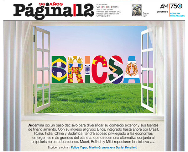 Première page du quotidien argentin «Página12»du 25 août 2023: L’Argentine a fait un pas décisif vers la diversification de son commerce extérieur et de ses sources de financement.