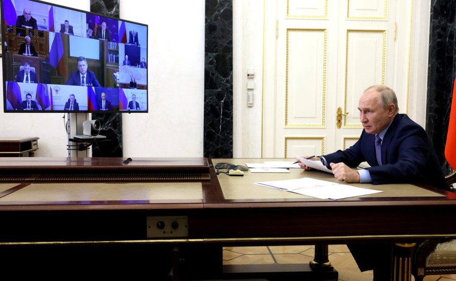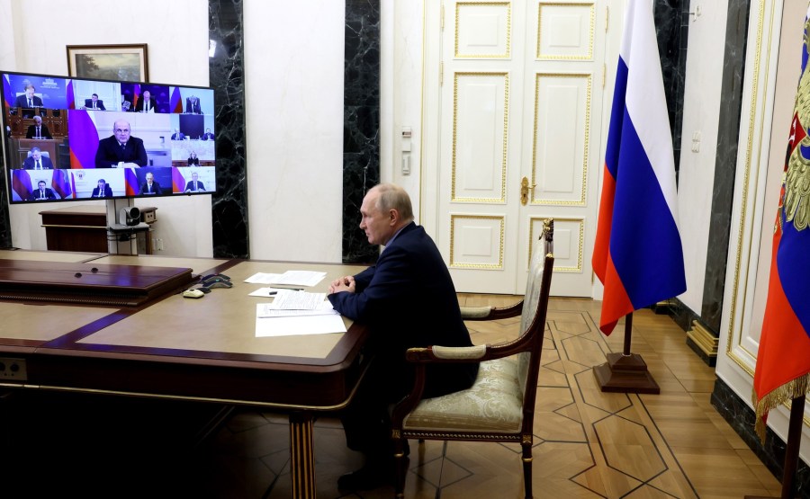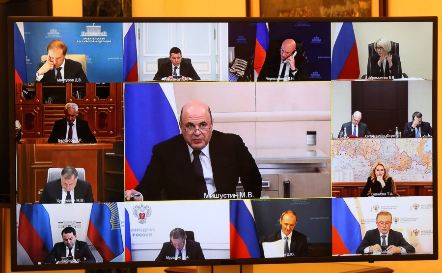Vladimir Poutine a tenu une réunion par vidéoconférence avec des membres du gouvernement.