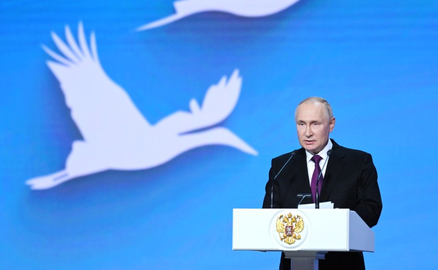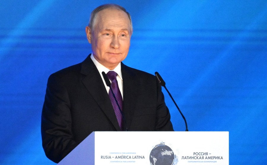 1 sur 7 – Vladimir Poutine a pris la parole à l’ouverture de la Conférence parlementaire internationale Russie-Amérique latine. Photo : Valéry Sharifulin, TASS