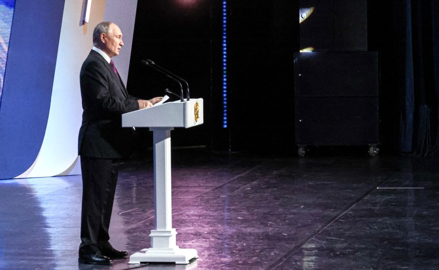 Je voudrais m’adresser aux habitants de la République populaire de Donetsk, de la République populaire de Lougansk et plus particulièrement des régions de Zaporojie et de Kherson. Merci de préserver et de transmettre votre amour de la Patrie à vos enfants malgré toutes les épreuves. Grâce à vous, à votre courage et à votre détermination, la Russie est devenue encore plus forte. Nous sommes un seul peuple et ensemble, nous pouvons tout surmonter et relever tous les défis.