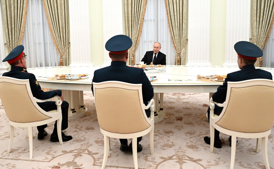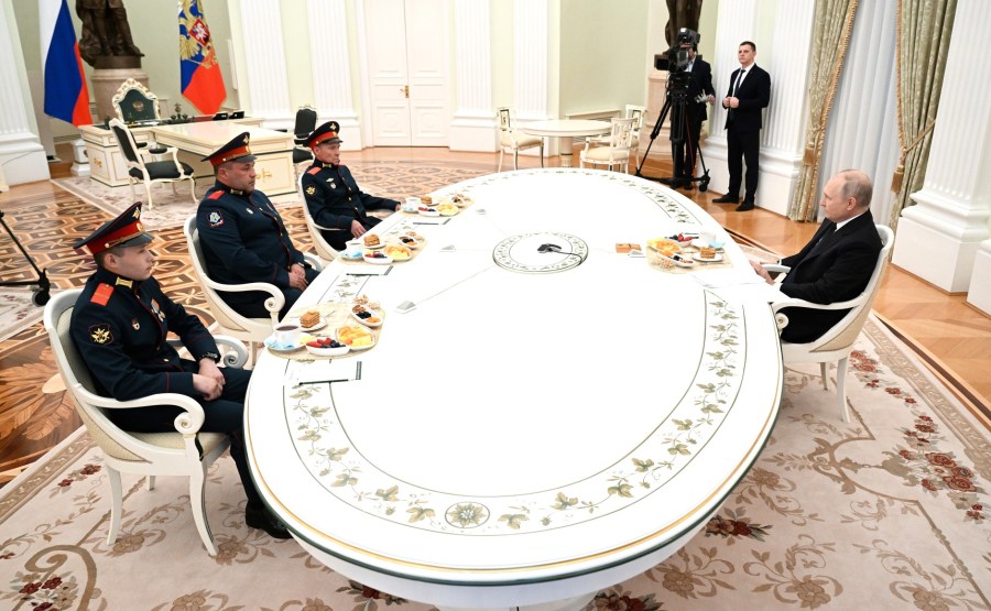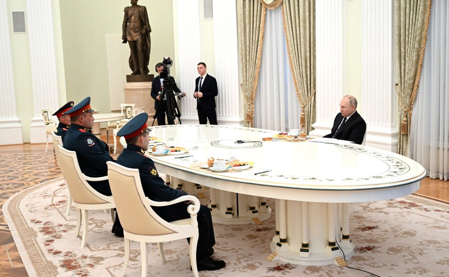 2 sur 6 – Lors d’une réunion avec les participants à l’opération militaire spéciale. Photo : Pavel Bedniakov, RIA Novosti
