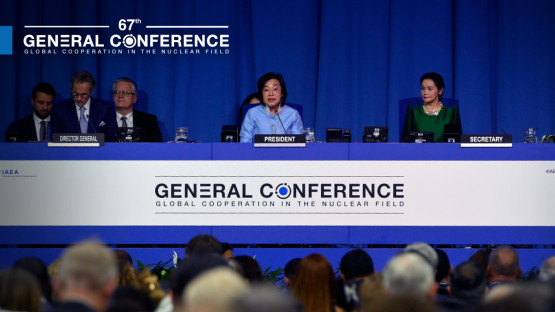La 67e Conférence générale annuelle de l’AIEA a adopté des résolutions relatives à la sûreté nucléaire et radiologique, à la sécurité nucléaire, et au renforcement de l’efficacité et à l’amélioration de l’efficience des garanties de l’Agence. Parmi les autres résolutions qui ont été adoptées figurent celles sur le renforcement des activités de coopération technique de l’AIEA, ainsi que sur les activités liées à la science, à la technologie et aux applications nucléaires.