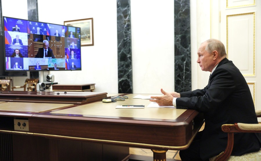 Vladimir Poutine a tenu une réunion par vidéoconférence avec des membres du gouvernement.