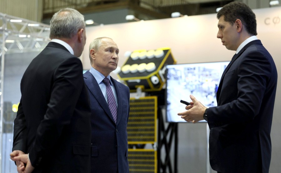 Le Président a été informé de la mise en œuvre du projet fédéral Sphère (Sfera) et de la production par lots d’engins spatiaux. L’objectif est de créer des groupes multi-satellites qui assureront l’accès à Internet haut débit et la télédétection de la Terre. L’exposition comprend les vaisseaux spatiaux Skif-D et Marafon IoT (Internet des objets).