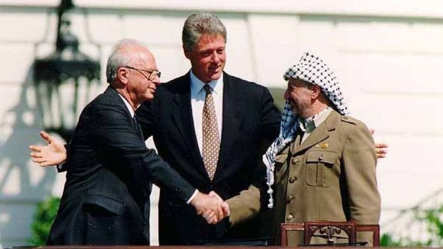 Cela a conduit à la signature des accords d’Oslo en 1993 par le Premier ministre travailliste israélien Yitzhak Rabin et Arafat sur la pelouse de la Maison Blanche, Arafat et l’Organisation de libération de la Palestine (OLP) acceptant de reconnaître Israël et de renoncer au terrorisme.