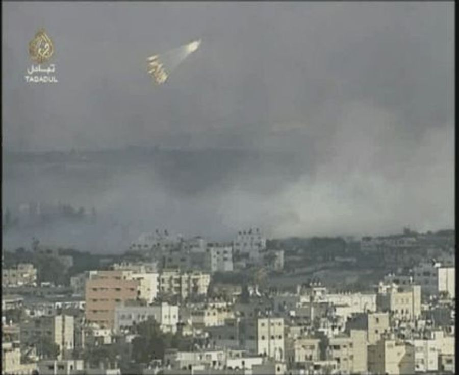 PH 07 L’armée de l’air israélienne largue une bombe à fragmentation au phosphore blanc sur une zone peuplée de Gaza lors de l’opération « Plomb durci », décembre 2008/janvier 2009 [Photo by Al Jazeera Creative Commons Repository / CC BY 3.0]