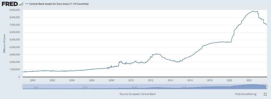 Tout est tellement parti à la dérive qu’en 2022 nous avons atteint les 9.000 milliards de bilan pour la BCE.