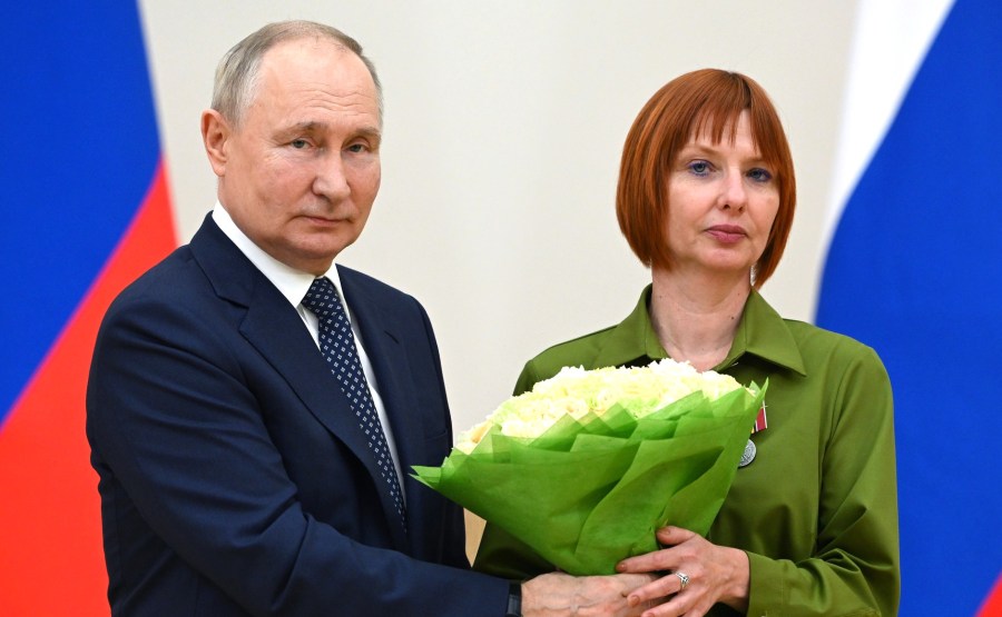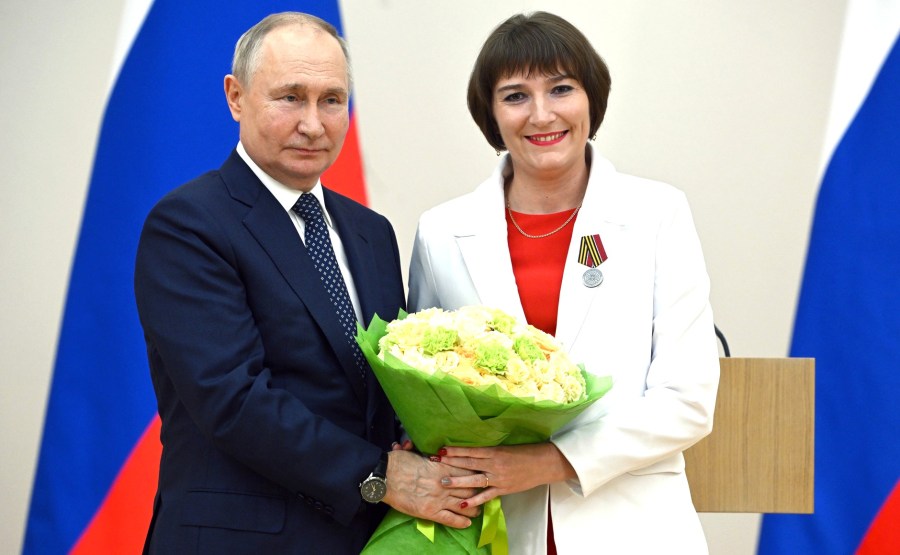 6 Cérémonie de remise des décorations d’État. La Médaille du courage, 2e classe, décernée à Tatiana Moskovchuk, secrétaire de la Commission électorale du district n° 252 de Donetsk. Photo : Sergueï Gouneev, RIA Novosti