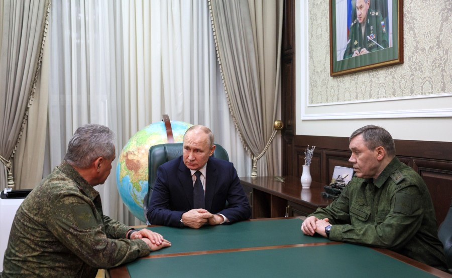 Au quartier général, le Président était accompagné du ministre de la Défense Sergueï Choïgou, du chef d’état-major des forces armées russes Valéri Gerasimov et d’autres commandants militaires.