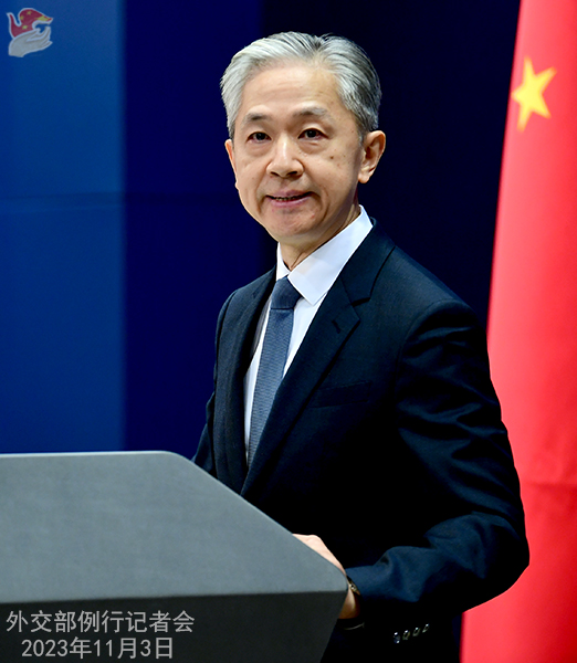 Conférence de presse du 3 novembre 2023 tenue par le porte-parole du ministère des Affaires étrangères Wang Wenbin
