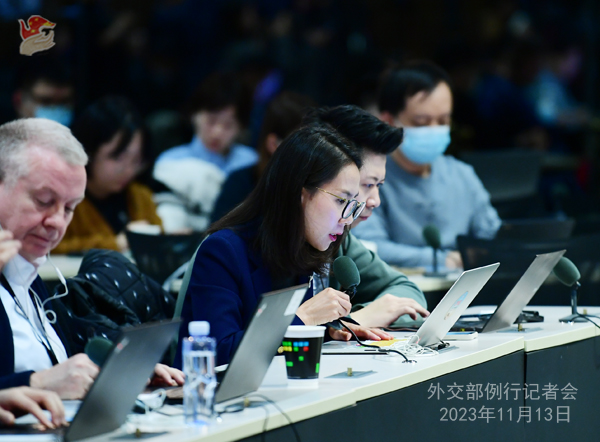 Conférence de presse du 13 novembre 2023 tenue par la porte-parole du ministère des Affaires étrangères Mao Ning