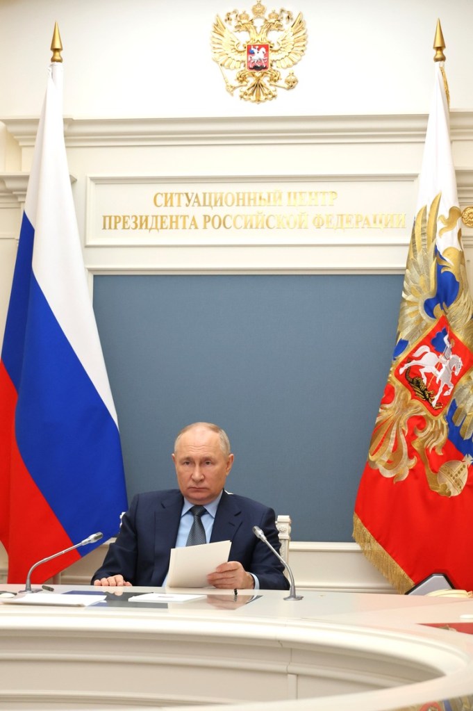2°/Vladimir Poutine a tenu une réunion par vidéoconférence avec des membres du gouvernement.