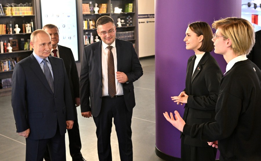 Avant la réunion, Vladimir Poutine a visité une exposition au Centre de connaissances Machouk – le centre national de formation des équipes de sensibilisation et de gestion dans le domaine de l’éducation, de la politique de jeunesse et du travail éducatif.