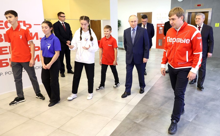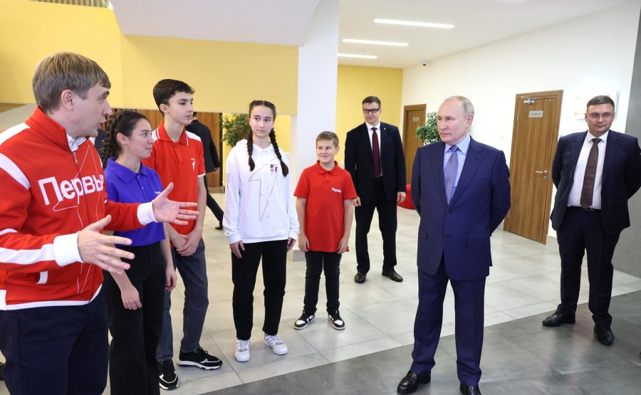 1 Avant la réunion du conseil de surveillance du Mouvement du Premier mouvement national d’enfance et de jeunesse, Vladimir Poutine a visité le Centre de connaissances Machouk.