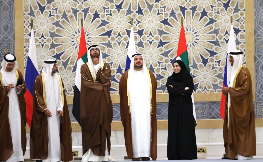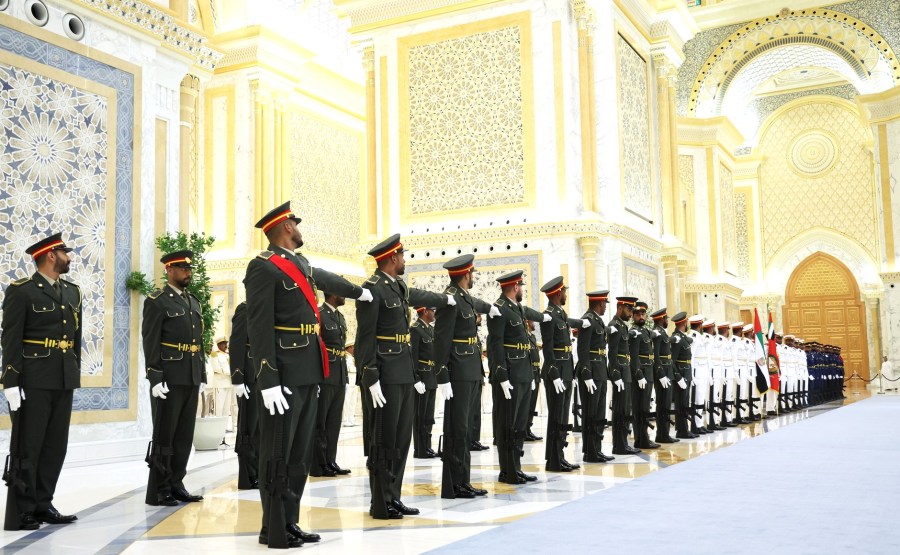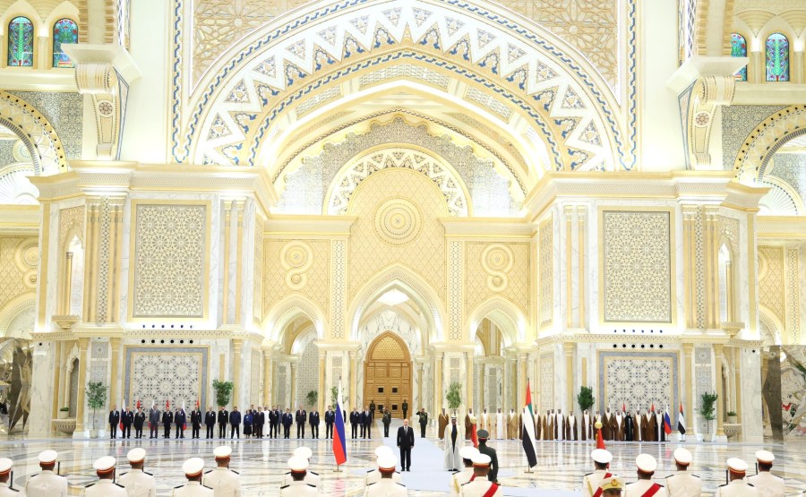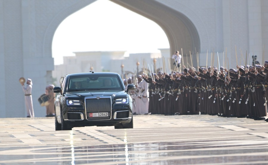Avant le début des consultations, une cérémonie officielle d’accueil du président russe a été organisée par le président des Émirats arabes unis au palais Qasr Al Watan.