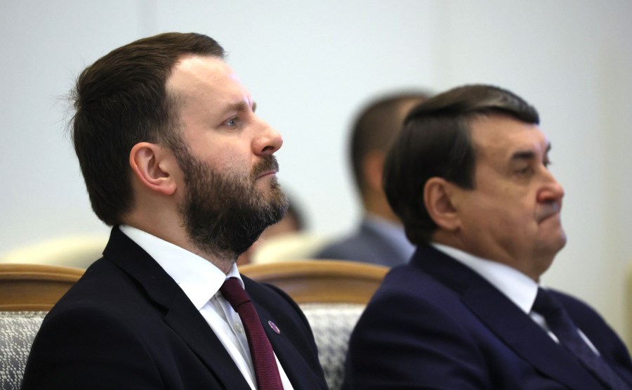 28 L’assistant présidentiel Maxim Oreshkin (à gauche) et Igor Levitin lors des pourparlers Russie-EAU. Photo : Sergueï Savostianov, TASS