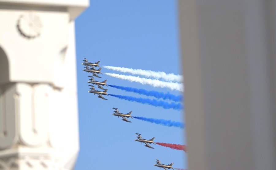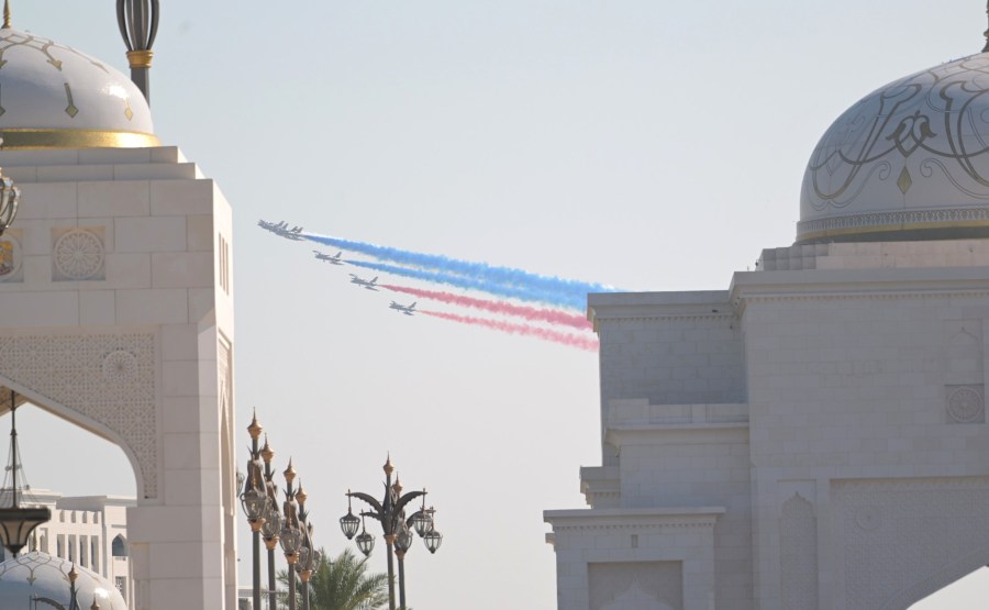 16 Cérémonie officielle d’accueil de Vladimir Poutine organisée par le président des Émirats arabes unis, Cheikh Mohammed ben Zayed Al Nahyan. Photo : Sergueï Savostianov, TASS