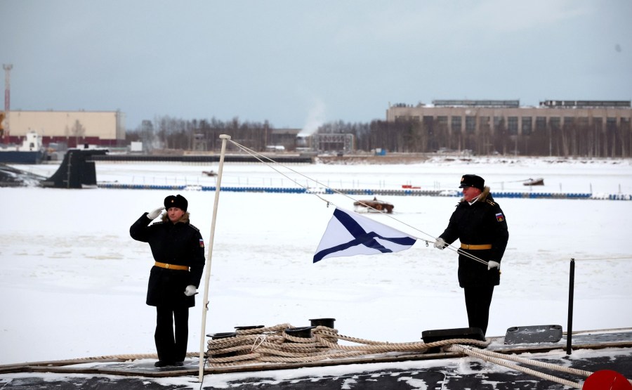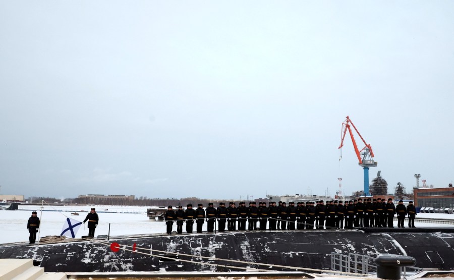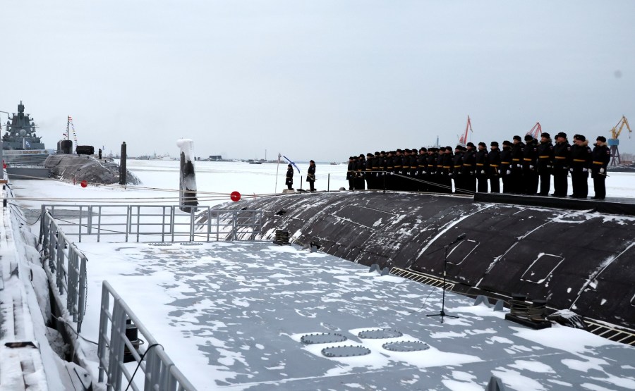 1°/Cérémonie de levée des drapeaux navals sur les sous-marins à propulsion nucléaire Empereur Alexandre III et Krasnoïarsk – 11 décembre 2023 à 15h50 à Sévérodvinsk