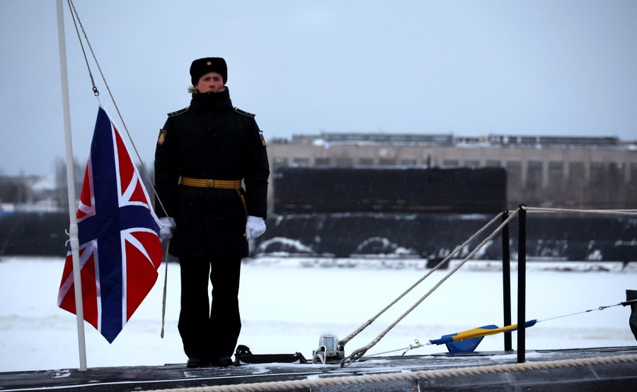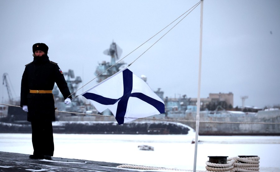 1/21 Cérémonie de levée du drapeau naval sur le sous-marin nucléaire Empereur Alexandre III