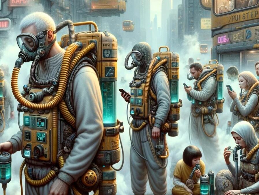 Ne vous inquiétez pas, une juste taxe sur l’air expiré saura nous sauver, ou des machines comme des « respirateurs » portables qui capteront nos mauvais gaz et qui nous seront loués à prix d’or sauveront la planète de notre présence et de notre existence.