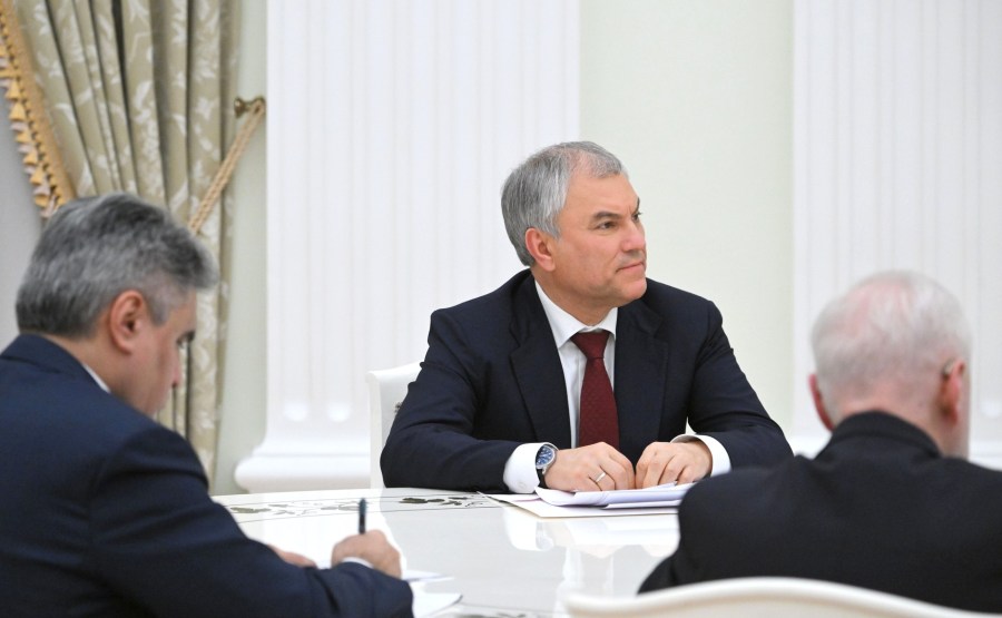 7 Le président de la Douma d’Etat Viatcheslav Volodine lors de la réunion avec les dirigeants des partis politiques représentés à la Douma d’Etat. Photo : Maxim Blinov, RIA Novosti