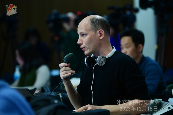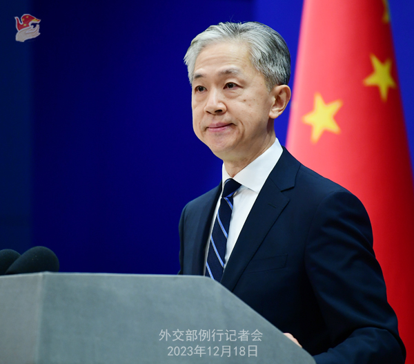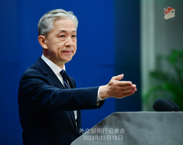 Conférence de presse du 18 décembre 2023 tenue par le porte-parole du ministère des Affaires étrangères Wang Wenbin