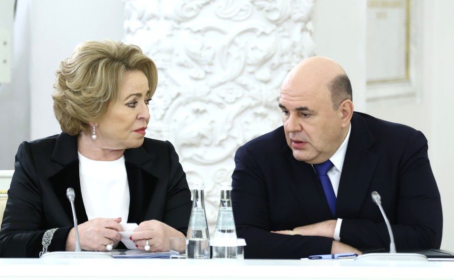 11 La présidente du Conseil de la Fédération Valentina Matvienko et le Premier ministre Mikhaïl Mishustin lors de la réunion du Conseil d’État sur l’augmentation du rôle et du prestige des enseignants et des mentors. Photo : Artem Geodakyan, TASS