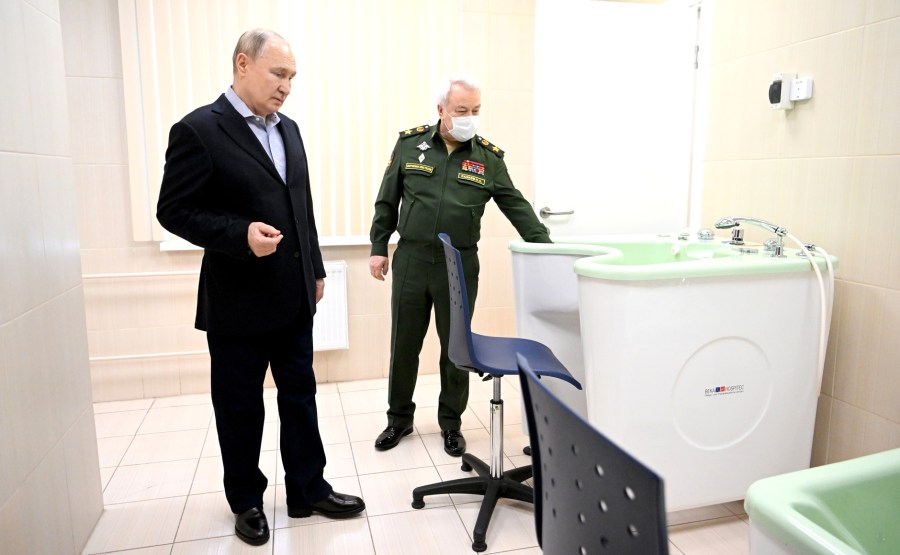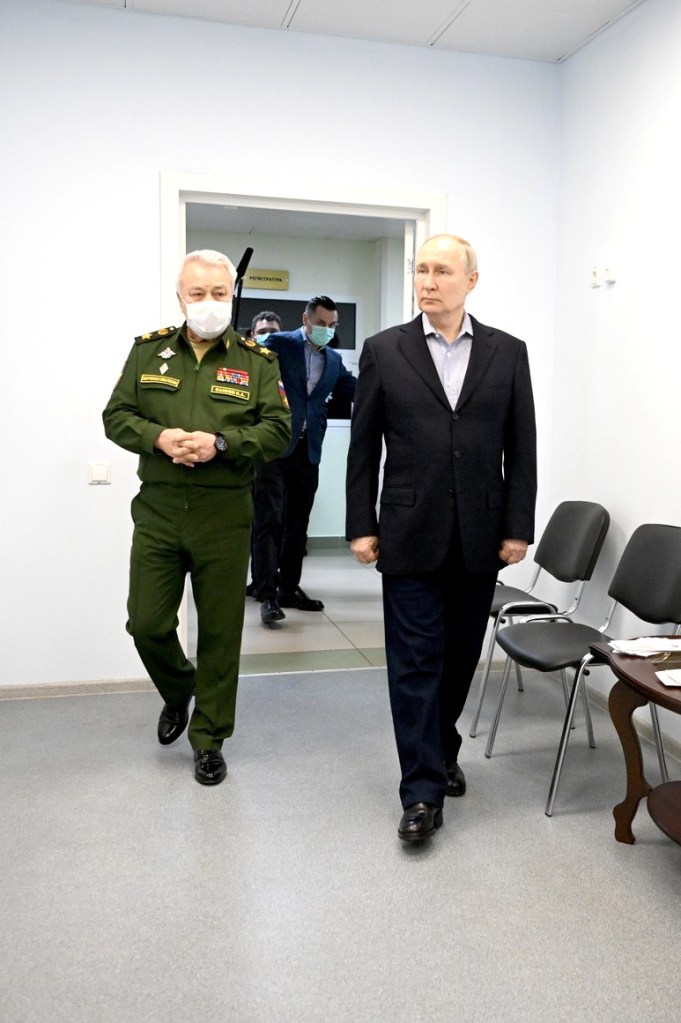 Le Président a visité la branche 2 du Centre national de recherche médicale des hautes technologies médicales – Hôpital clinique militaire central Vishnevski du Ministère de la Défense de la Fédération de Russie, où sont soignés les militaires des forces armées blessés lors de l’opération militaire spéciale.