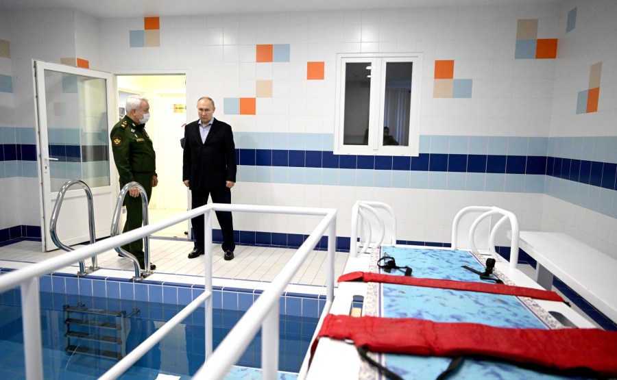Avec le secrétaire d’État et vice-ministre de la Défense Nikolaï Pankov, Vladimir Poutine a inspecté l’unité de stimulation magnétique transcrânienne, la piscine thérapeutique, la salle de gymnastique thérapeutique, le centre thermal, ainsi que le centre éducatif de rééducation, les salles de physiothérapie et le centre de consultation en matière de logement pour les personnes handicapées. personnel militaire.