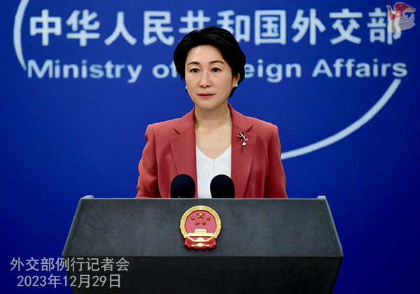 6°/Conférence de presse du 29 décembre 2023 tenue par la porte-parole du ministère des Affaires étrangères Mao Ning