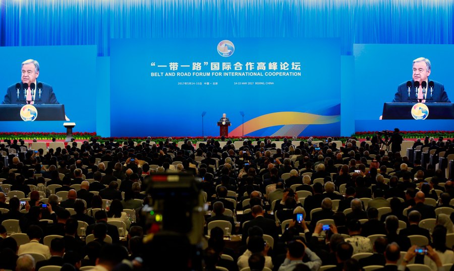 PHOTO Le secrétaire général António Guterres s’exprime sur la coopération internationale lors du forum sur l’initiative «la Ceinture et la Route». Source: UN Photo / Zhao Yun