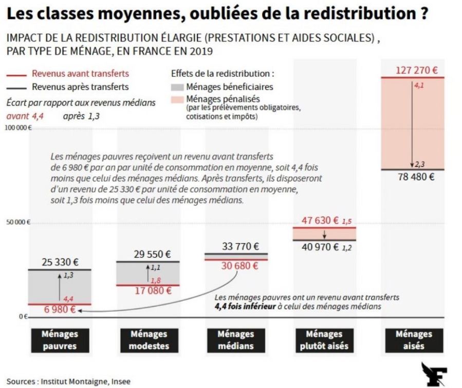 Un ménage très pauvre recevant que 6 980 € par an, se verra compenser par l’Etat c’est-à-dire par nos impôts et verra son revenu monter par transfert à 25 330 euros !