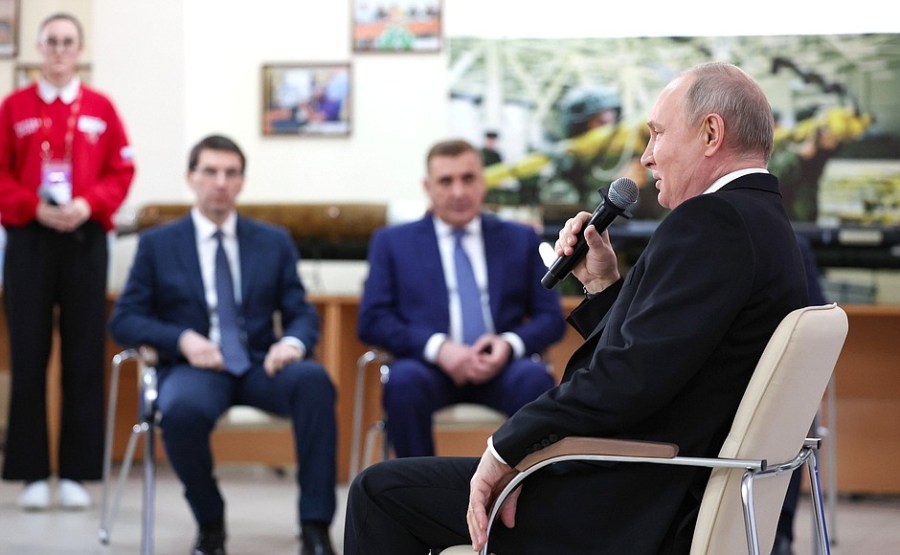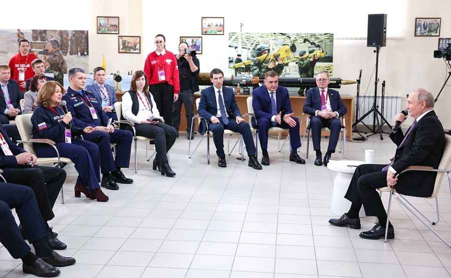 Avant la séance plénière, le Président a rencontré Tout pour la Victoire ! des militants du forum de divers horizons professionnels qui se sont réunis à Toula pour discuter des moyens de soutenir l’opération militaire spéciale.