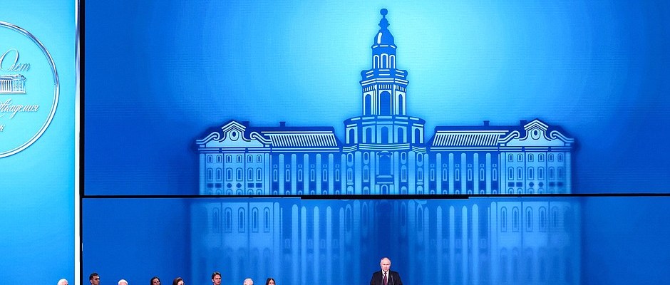 Je voudrais adresser à tous mes meilleurs vœux à l’occasion du 300e anniversaire de notre Académie et exprimer ma gratitude aux dirigeants du pays et au Président Poutine personnellement pour la haute reconnaissance qui nous a été accordée à cette occasion.