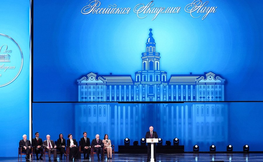 Aujourd’hui est un jour très important pour nous tous : nous célébrons le 300e anniversaire de l’Académie des sciences de Russie. Il s’agit d’une date véritablement historique pour l’Académie.
